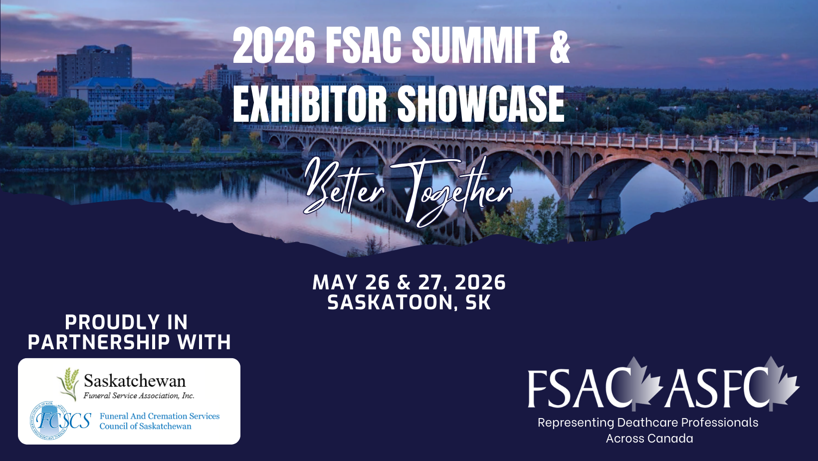 Set against the backdrop of the beautiful South Saskatchewan River, this year’s Summit brings together deathcare professionals from across Canada for fresh ideas, practical education, and meaningful conversations that move our profession forward. Expect engaging sessions led by subject-matter experts, timely insights into emerging trends, and plenty of opportunities to exchange ideas with peers who understand your work.